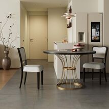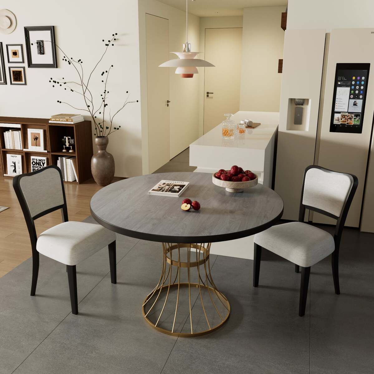 Complete 3-piece dining set ? 42-inch round table plus 2 matching side chairs arrive together; no guesswork, instant cohesive look.