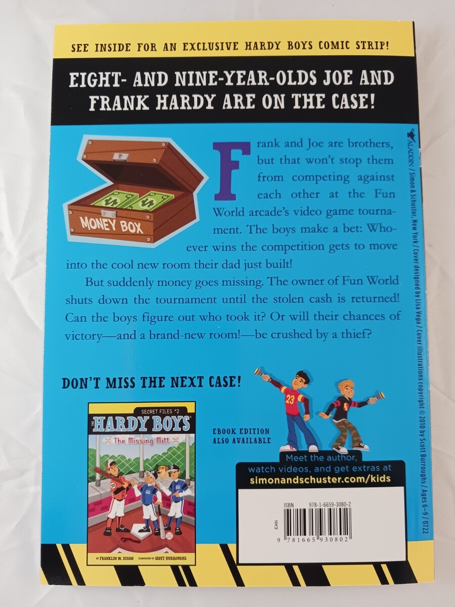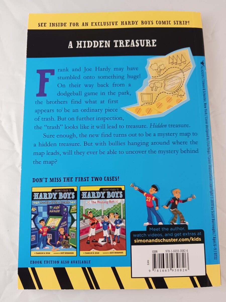 The Hardy Boys Secret Files, Book Lot #1-4, by Franklin W. Dixon, is a series of fiction books aimed at the ages of 9-12. Published by Simon Schuster in 2010, these detective stories fall under the genres of action, adventure, and mystery. The books are illustrated by Burroughs, Scott, and measure 7 5/8 inches in length and 5 1/8 inches in width, making them a convenient size for young readers to enjoy the thrilling narratives of the Hardy Boys.