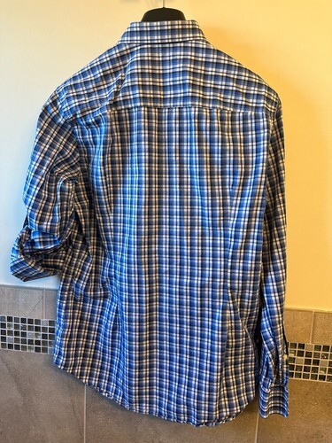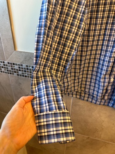 Michael Kors Cotton Blue Plaid Convertible Sleeve Button Down Shirt SZ M