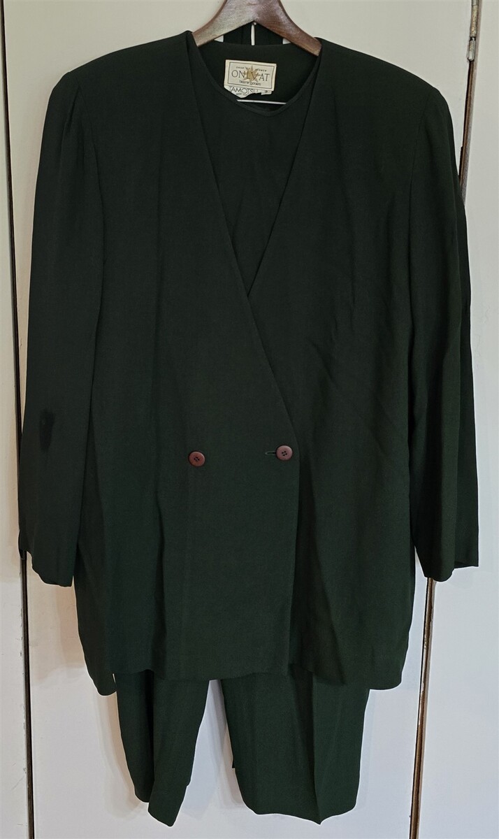 3 Piece Womens Plus 2/3 Tamotsu NY Deep Green Jacket Shirt Pants Suit Pantsuit