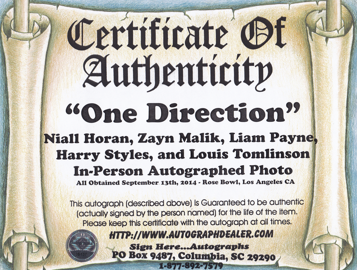 One Direction Authentic In-Person autographed 8x10 cast photo by all 5 with COA