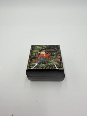 Folk Art Russian Wood Lacquer Box 80s Handpainted Fairy Tale woman in the well
