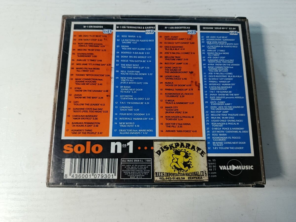 A gem del Spanish dance sonidode finalsdelos 90. ?Solo Nยบ1? was one de the most popular compilations on television and in stores, conun unmistakable design andun repertoirede hymnsde disco. Although los CDs show wear, they are still a must-have para collectors.de Vale Music sonido del Eurodance Trance 1999. Solo Nยบ1, Vale Music, 1999, 4CD, dance compilation, eurodance, trance, house, Mr Oizo, ATB, Ruff Driverz, Ann Lee, Gigi D'Agostino, Carolina Marquez, Kosmonova, Anti-Funky, Salome, 90s, 90s music, collection CD, Spanish dance, continuous session, electronic music, Spain edition, vintage CD, compilation CD los toreros muertos, Por Biafra, original CD, Ariola 1987, Spanish pop 80s, Spanish music, Madrid scene, Pablo Carbonell, musical humor, pop satire, musical rarity, CD collecting, vi