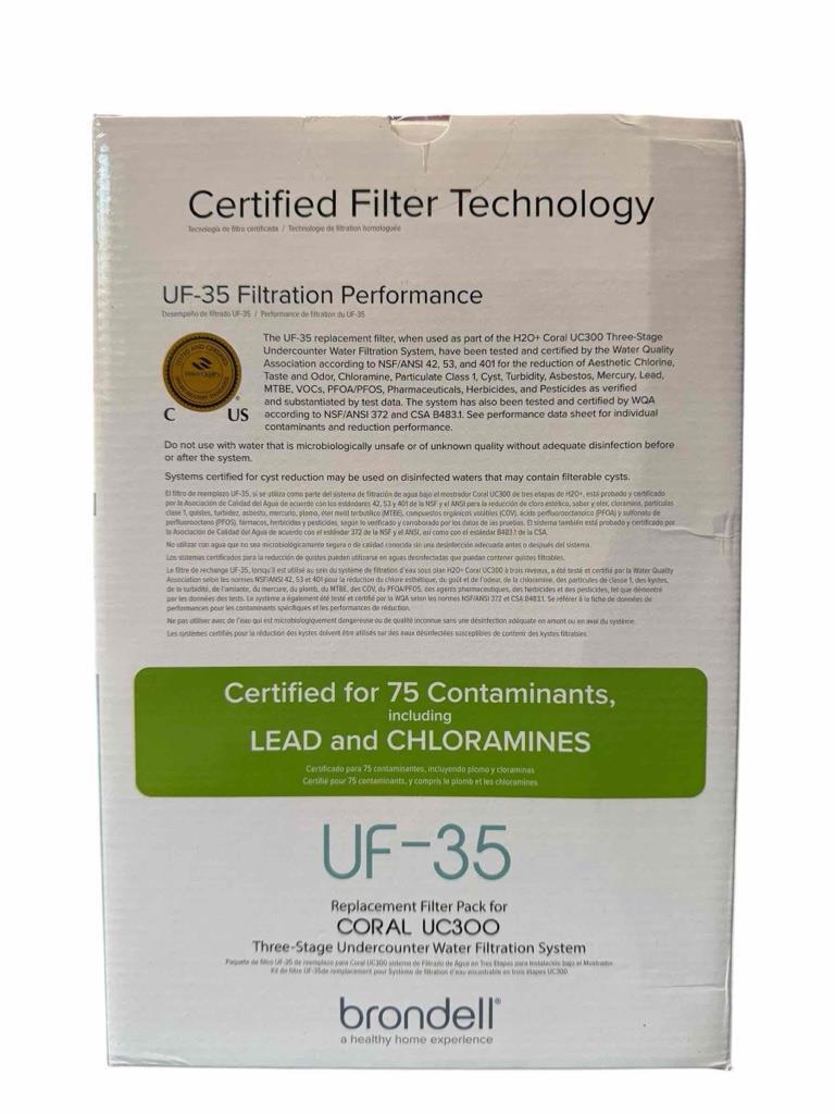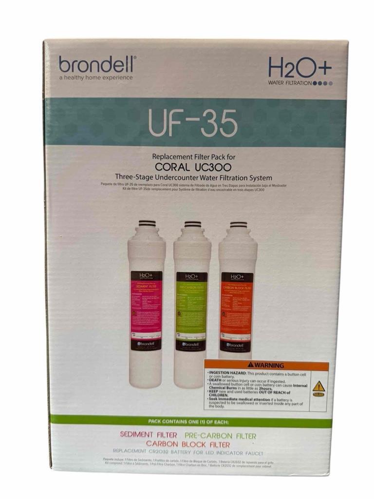 NEW BRONDELL H2O+ UF-35 REPLACEMENT FILTER PACK FOR CORAL UC300 THREE STAGE UNDERCOUNTER WATER FILTRATION SYSTEM.