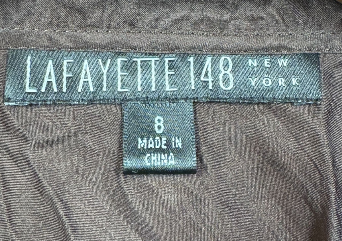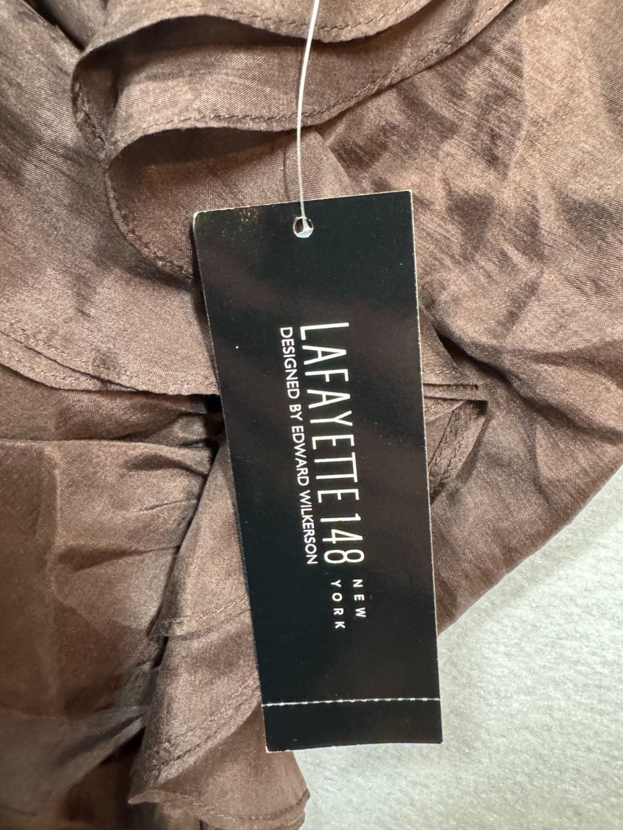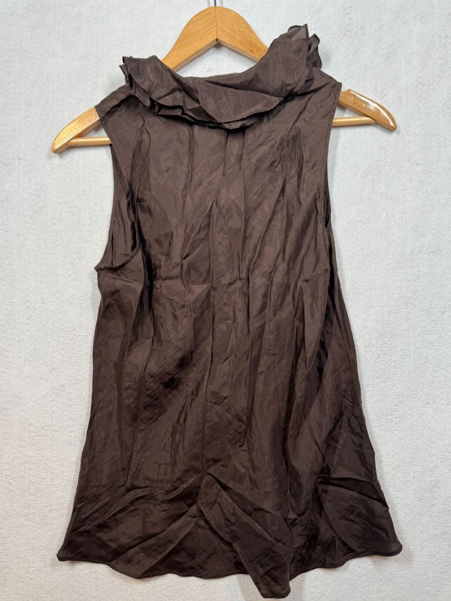 Lafayette 148 New York Silk Ruffled Front Blouse Brown Sleeveless Top Women's 8