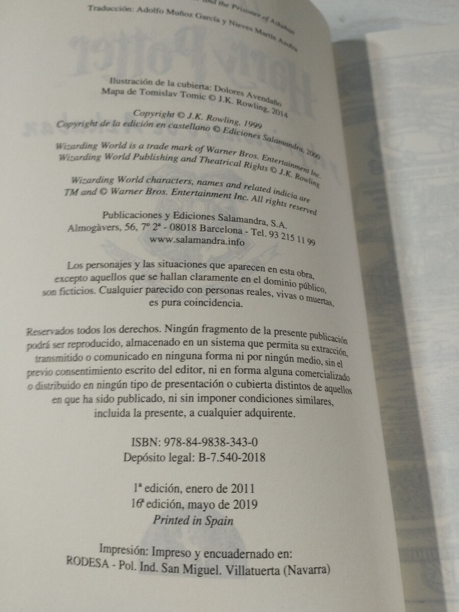HARRY POTTER Y El Prisionero De Azkaban J K Rowling 2019 Salamandra Libro 3T
