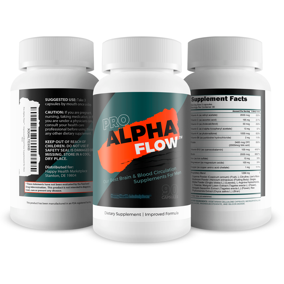 Pro Alpha Flow is a nootropic brain supplement designed to support both cognitive performance and healthy blood flow throughout the body. With a synergistic blend of nootropic and circulation support ingredients, these mens blood flow brain enhancement pills promote memory, focus, mental clarity, and long-term brain health while aiding good blood flow vital areas. Whether looking to stay mentally sharp or increase blood flow to support overall vitality, Pro Alpha Flow is built to deliver daily support for your mind and body. It’s designed for those who want total wellness in one formula.