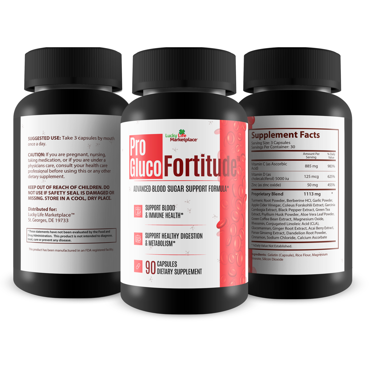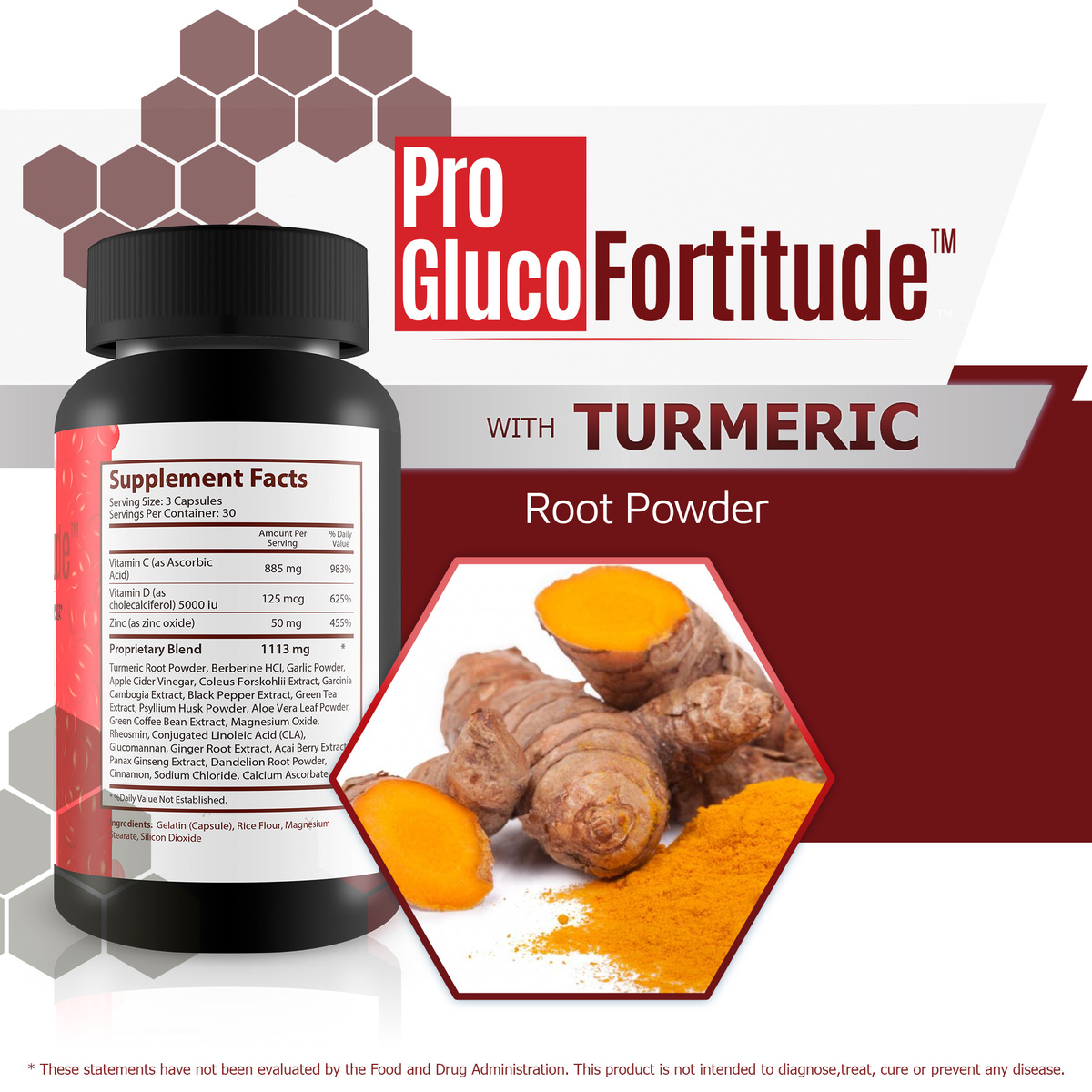 Pro Gluco Fortitude Advanced Blood Sugar Support Formula contains clinically researched premium ingredients including Cinnamon, Berberine, Vitamin D Magnesium. It also contains Turmeric, Zinc, Garlic, Black Pepper, Vitamin C, Panax Ginseng, and more to naturally support immune health, reduced inflammation, reduced oxidative stress, healthy blood flow, and cardiovascular health. Our best natural blood health supplements for men and natural blood health supplements from women are made in the USA under strict quality control guidelines. For best results, combine Pro Gluco Fortitude pills with a healthy diet and exercise