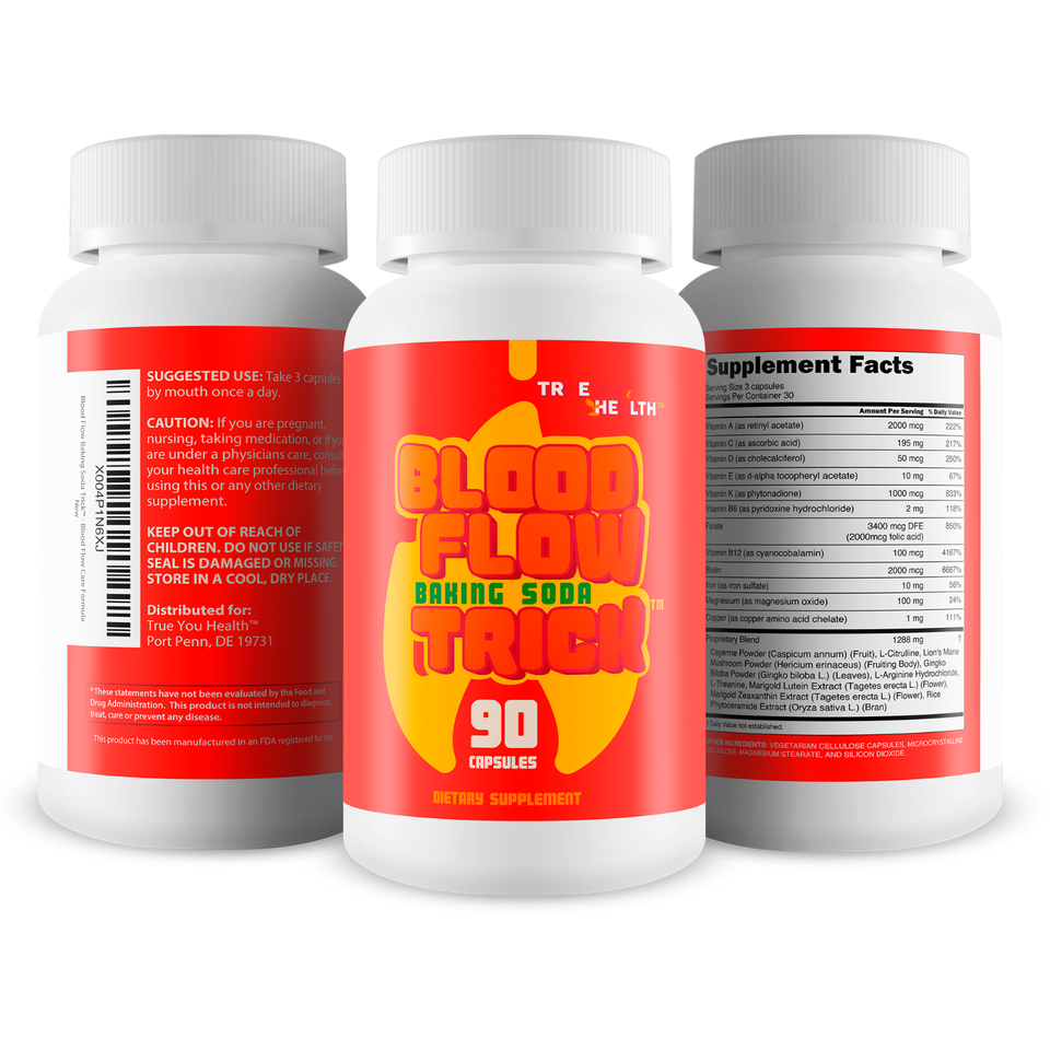 Targeted Circulation Support for Men - Blood Flow Baking Soda Trick pills are a men blood flow supplement created to support healthy circulation, vitality, and overall male wellness. Formulated as a multi vitamin mens blood flow supplement, this formula combines essential nutrients and botanicals and works best when taken with baking soda. Whether youโre seeking menโs blood flow supplements or a complete solution for mens circulation support, this product supports daily blood flow care and good blood flow from head to toe.