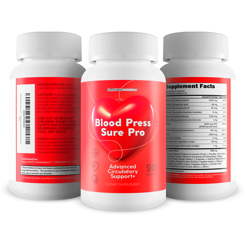 Enhance your circulatory health with Blood Press Sure Pro blood circulation supplements for men and women. These advanced blood flow capsules are designed to support healthy blood flow and circulation naturally. Formulated as a comprehensive multi vitamin mens blood flow supplement, it combines essential vitamins, minerals, amino acids, herbs, and antioxidants to boost blood flow throughout the body. Whether you are seeking l-arginine nitric oxide pills for men, our best blood flow booster for women, or a leg circulation supplement, Blood Press Sure Pro is carefully crafted to help you achieve your circulatory health goals.