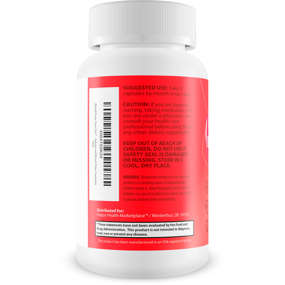 Daily Blood Flow Supplement for Men and Women - Blood Press Sure Pro are womenโs and men's blood flow supplements designed to help blood flow throughout the body. Formulated with vitamins, minerals, amino acids, natural extracts, and antioxidants, these blood circulation supplements for men and women promote circulation and oxygen delivery to vital organs, the brain, and the cardiovascular system. Our best nitric oxide booster for men and women helps encourage overall vitality and wellness, making it ideal for anyone seeking poor circulation supplements, a pressure supplement, blood flow circulation supplements, or nitric oxide supplements for women and men.
