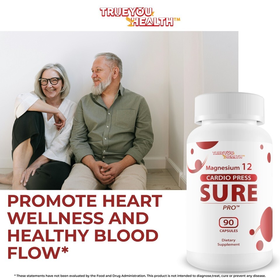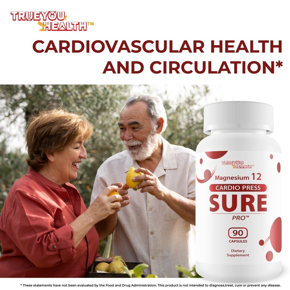 Magnesium 12 Cardio Press Sure Pro - Our Best Poor Circulation Supplements - Advanced Blood Flow Supplement - Advanced High Pressure Pills - Cardio Care Pressure Supplement for Blood Pressure Support