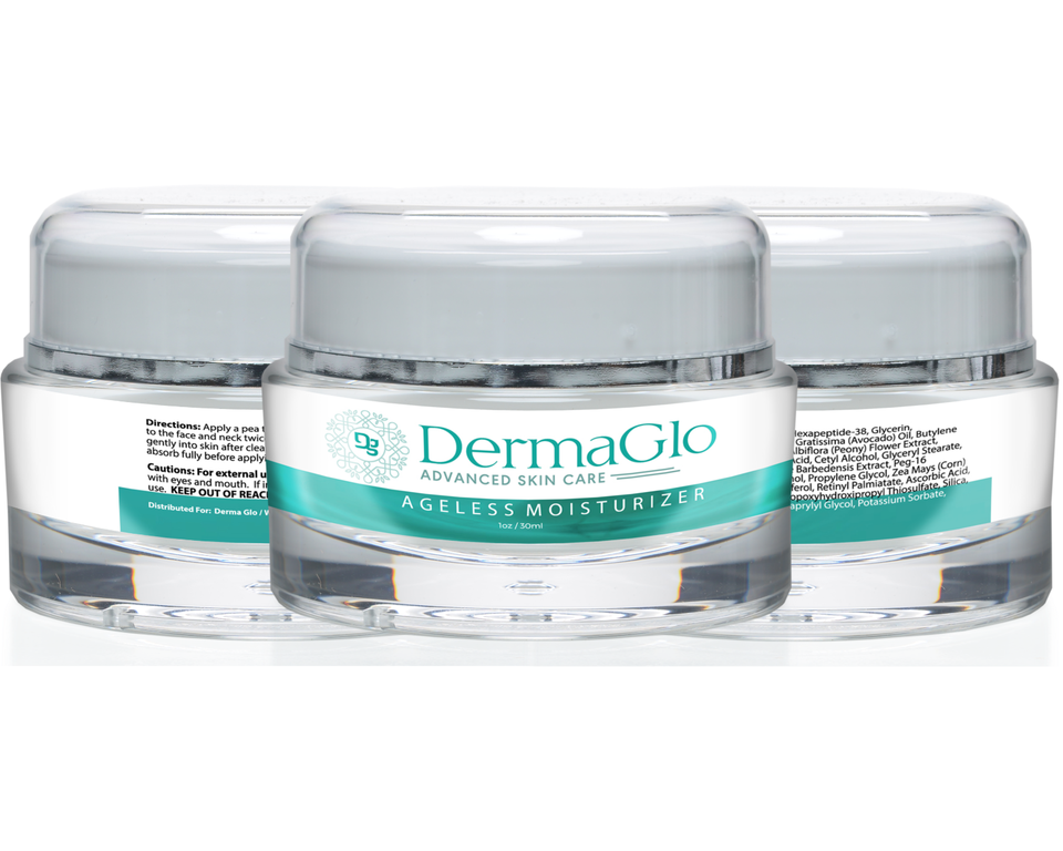 DermaGlo advanced skincare ageless moisturizer is a unique and helpful product that gives you the thing you want most โ your youth back. You no longer have to feel self-conscious that everyone in a room will know your age by the crowโs feet around your eyes and the wrinkles on your face. Instead, you get to enter any room with the confidence of knowing how young you look and feel with the use of DermaGlo. DermaGlo advanced skincare ageless moisturizer helps you to battle against the fine lines and wrinkles that make you look much older than you feel on the inside. This treatment is meant to provide an elevated level of moisture to your complexion, and it replaces your existing lotion in your routine. Our formula contains natural ingredients such as avocado oil, peony flower extract, aloe exact, and others to help your skin retain moisture leaving it soft and smooth to the touch.