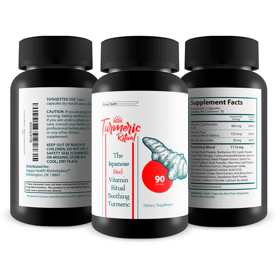 Turmeric Ritual - Soothing Turmeric Nerve Health - The Japanese Red Vitamin Ritual Supplement - Our Best High Absorption Turmeric Supplement - Natural Daily Relief Factor for Swelling Discomfort