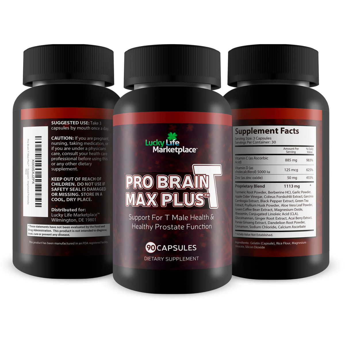 Pro Brain-T Max Plus is an all-in-one premium supplement designed to support t male health healthy prostate function. The advanced men’s health formula contains over 20 vitamins, minerals, antioxidants, and herbs to support t male health, prostate health, cognitive health, and immune health. Pro Brain-T Max Plus main focus is to aid vitality and longevity in men. Some of the key ingredients include Vitamin C, Vitamin D, Turmeric Curcumin, Panax Ginseng, Green Tea Extract, Zinc, Magnesium, and Berberine. The combined ingredients in this maximum strength formula support healthy prostate function, immune system, cognitive function, energy, stamina, and endurance. This is our best men’s health supplement we’ve ever created. For best results incorporate moderate exercise and a healthy diet while taking Pro Brain-T Max Plus daily.