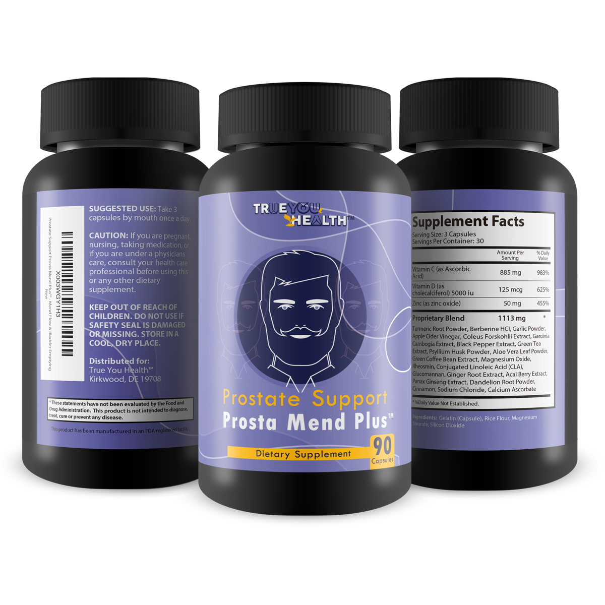 Prostate Support Prosta Mend Plus is a safe and effective prostate support supplement for seniors and adults designed to support prostate health overall wellness in men. The advanced prostate formula contains over 20 vitamins, minerals, antioxidants, and herbs for complete prostate support and additional health benefits. Turmeric Curcumin, Green Tea, Vitamin C were added to support normal prostate size and improved blood flow. It contains a high dose of Vitamin D to promote urinary health and improved bladder control while supporting increased urine flow to help fully empty the bladder and reduce urinary urges. Aid healthy sleep patterns with less trips to bathroom at night. Other key ingredients are Panax Ginseng, Zinc, Magnesium, and Berberine. The combined ingredients in this high potency formula support healthy prostate function, kidney health, immune health, and more. This is one of our best prostate support supplements we have ever created. Take Prostate Support Prosta Mend Plus daily to support male prostate health, urinary tract health, and more.