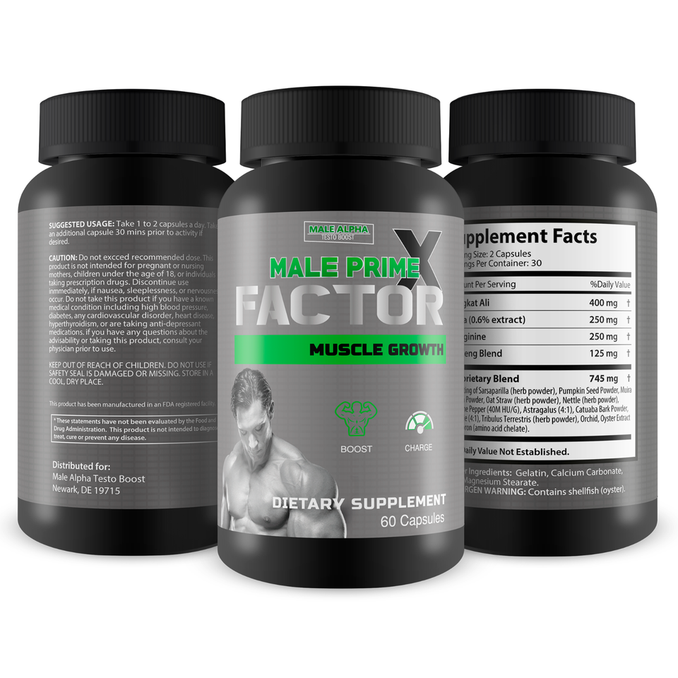 Male Prime X Factor is an all-in-one menโs health supplement designed to support energy, endurance, and overall vitality. This advanced formula combines potent natural ingredients like L-Arginine, Maca, Tongkat Ali, Muira Puama, and Tribulus Terrestris to help promote healthy blood flow, stamina, and wellness. Healthy circulation is essential for delivering oxygen and nutrients throughout the body, supporting energy, focus, and daily performance. Male Prime X Factor serves a comprehensive testosterone booster for men of all ages seeking support for blood flow, energy, stamina, sexual health, performance, mental focus, and stamina.