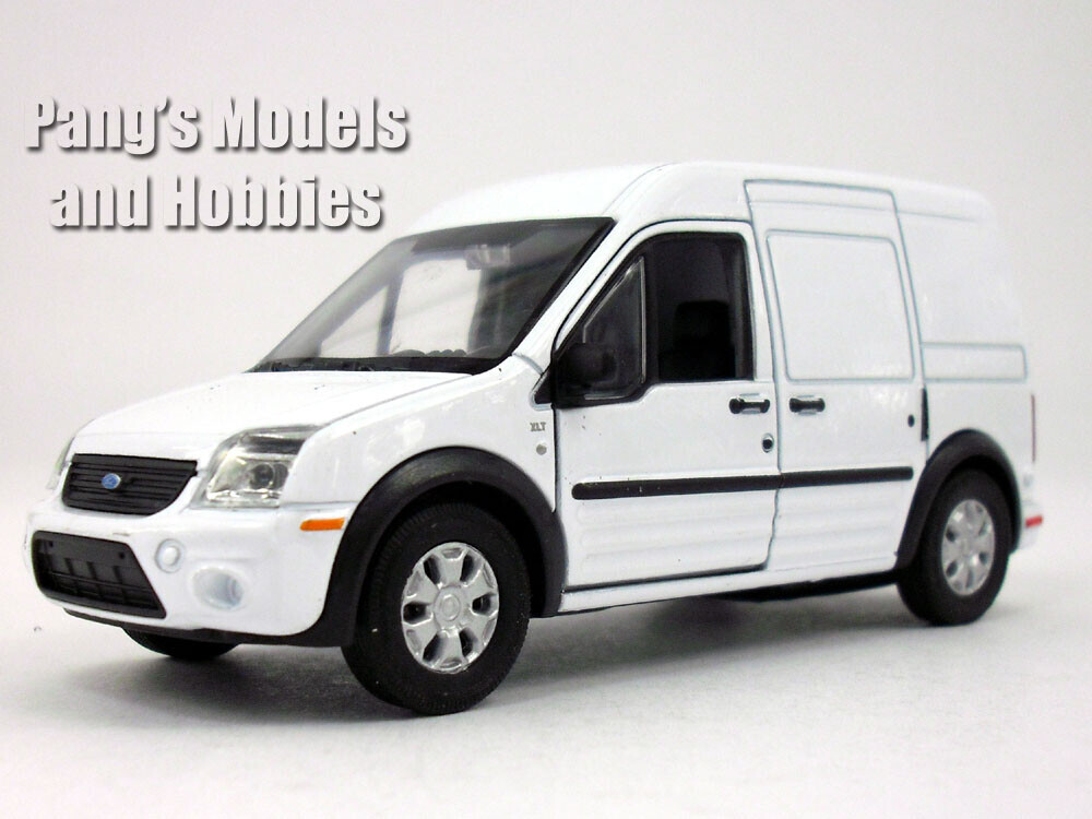 The Ford Transit Connect scale model by Welly measures about 4 inches long by about 1.75 inches wide by about 2 inches high. It has very nice details such as separate clear plastic headlights, taillights, mirrors and grill.