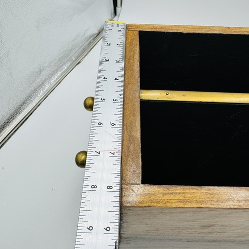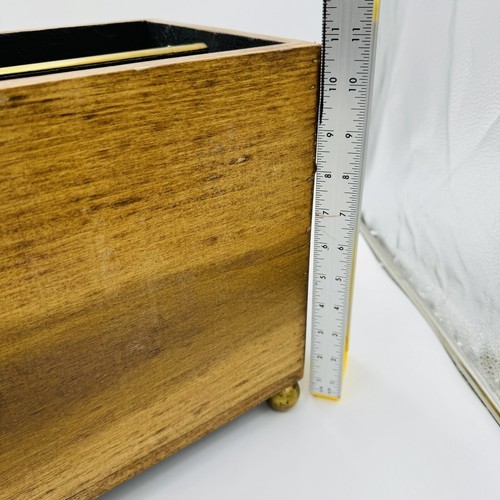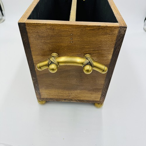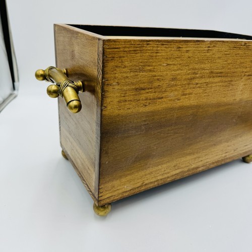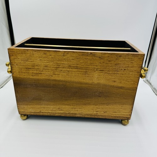Magazine Holder Brass Handles Vintage Solid Wood Hollywood Regency Storage Decor