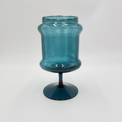 Empoli Art Glass Italy Footed Blue Teal Compote 7.5”H Jar Vase MCM Vintage