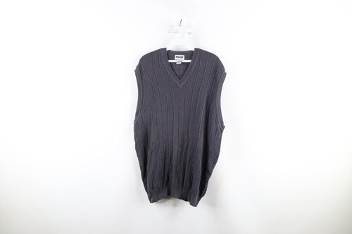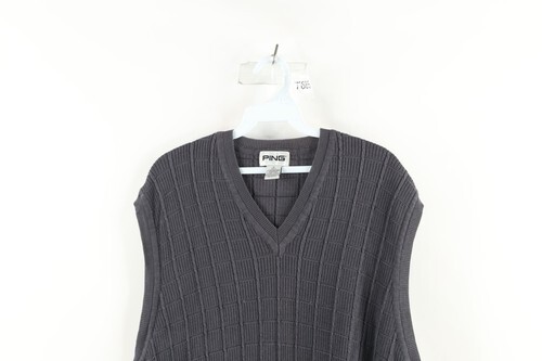 Vintage 90s Ping Golf Mens XL Faded Ribbed Cable Knit V-Neck Sweater Vest Gray