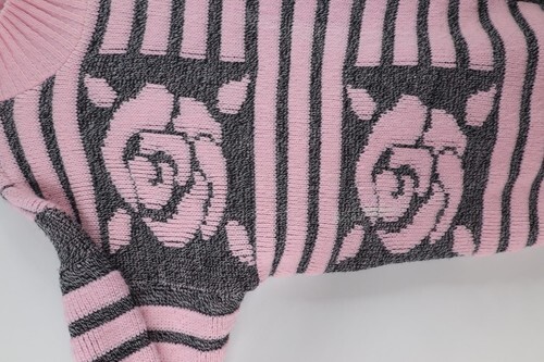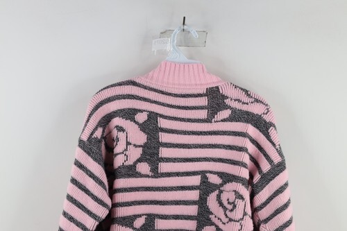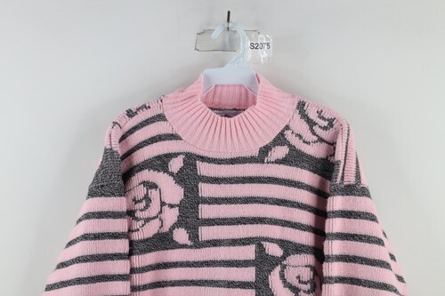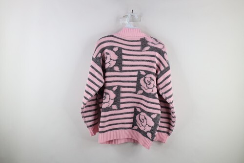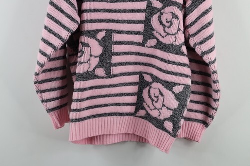 Vintage 90s Streetwear Womens Medium Striped Rose Flower Knit Sweater Pink USA