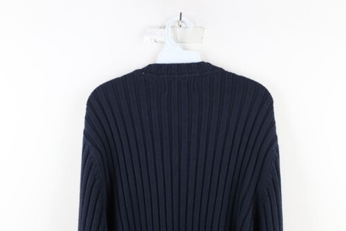 Express Mens L Faded Blank Chunky Ribbed Knit Heavyweight Sweater Blue Cotton