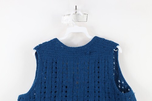 Vintage 70s Streetwear Womens Large Blank Open Front Crochet Knit Sweater Vest