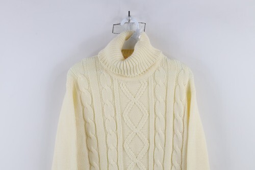 Vintage 70s Streetwear Mens Large Chunky Cable Knit Fisherman Turtleneck Sweater
