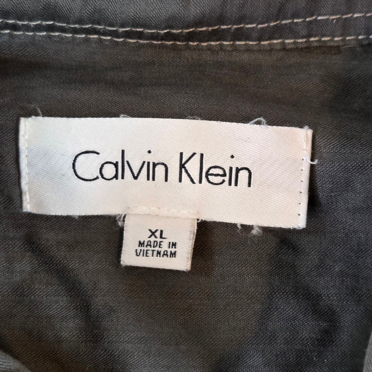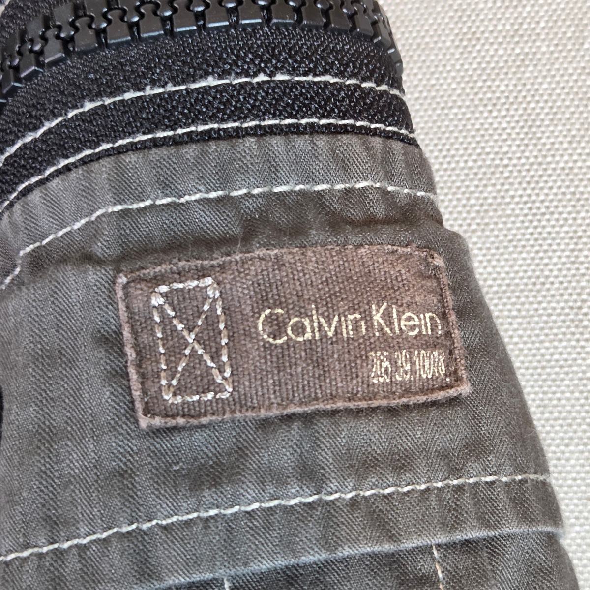 Lightweight Calvin Klein men?s full zip jacket in a muted green shade. Made from 100% cotton with clean minimal styling, featuring zip pocket accents on both sleeves. Comfortable for transitional weather and casual everyday wear.