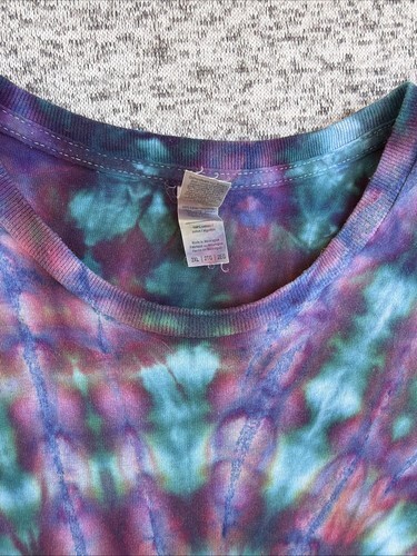 Gildan Women?s Purple Green Blue Spiral Ice Tie Dye Short Sleeve Shirt Size 2XL