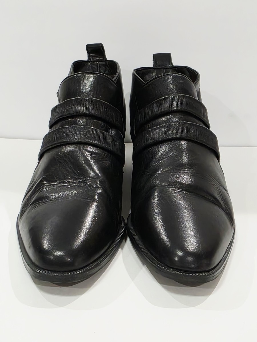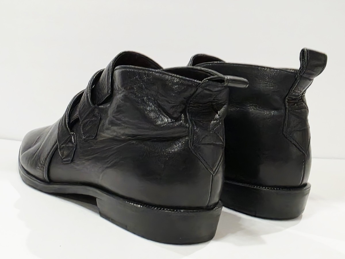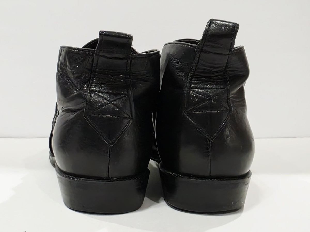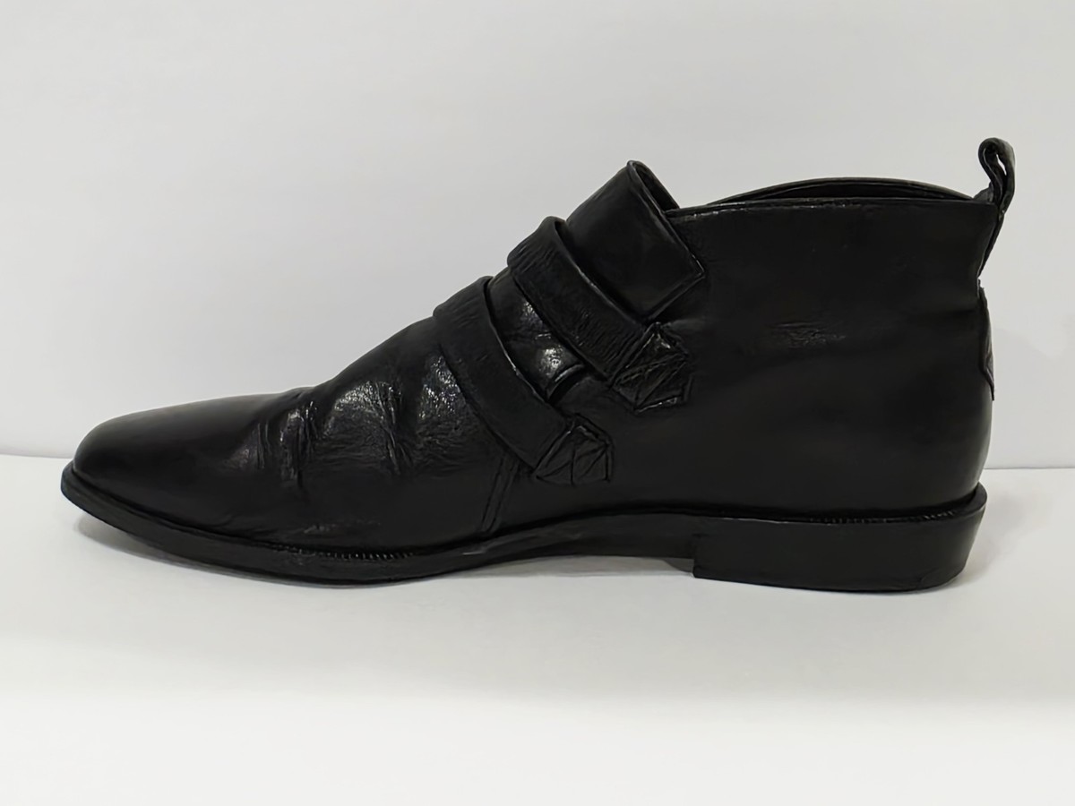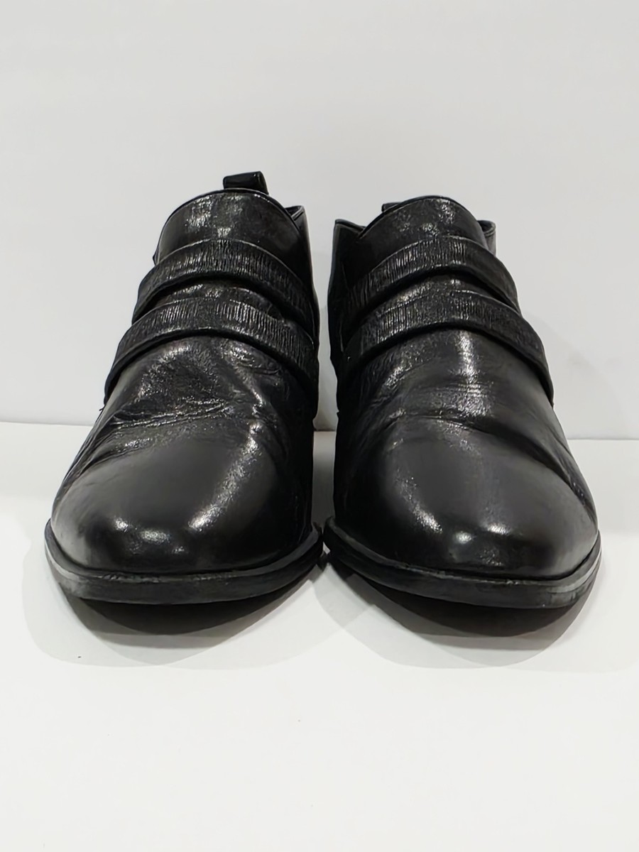 1 Slightly Used No Box By Enzo Angiolini BLACK LEATHER Ankle Boot Bootie Flat Pull-On with 2- Straps Vintage 6 Used (Box #9)