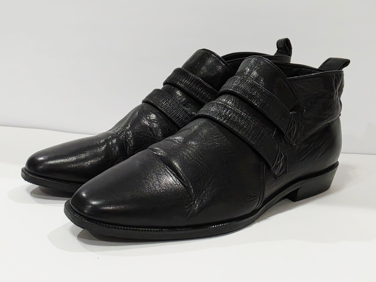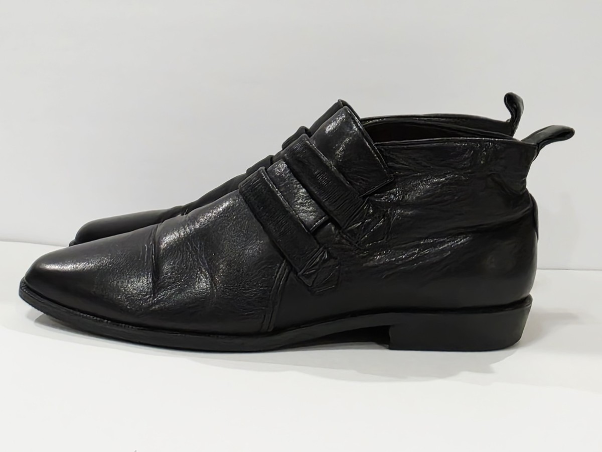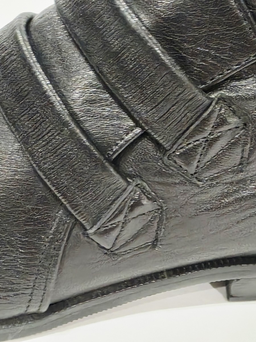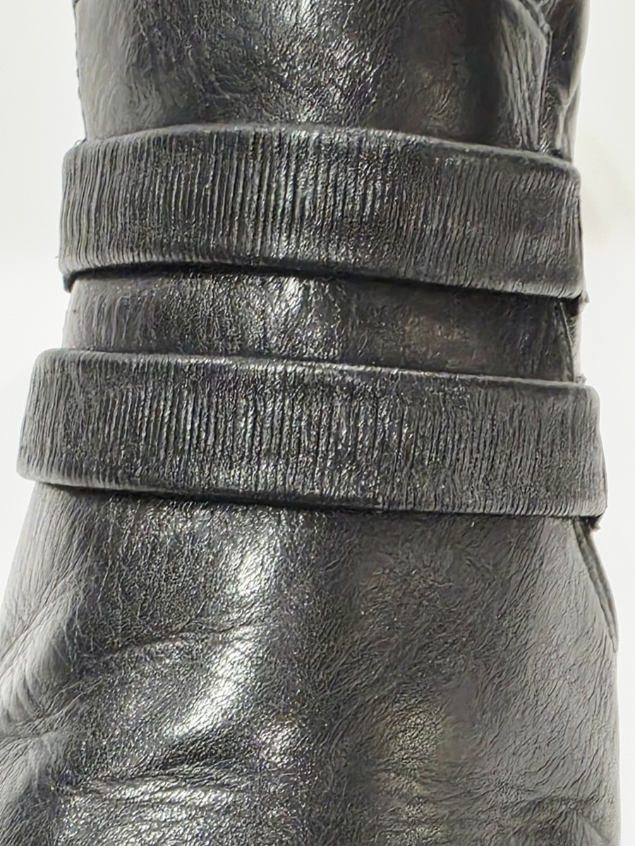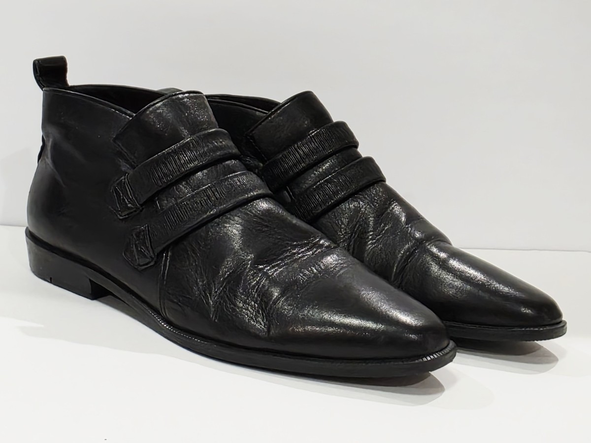 1 Slightly Used No Box By Enzo Angiolini BLACK LEATHER Ankle Boot Bootie Flat Pull-On with 2- Straps Vintage 6 Used (Box #9)