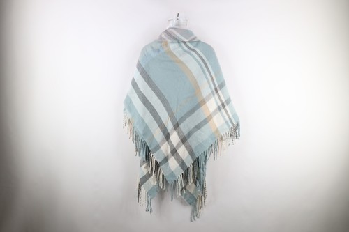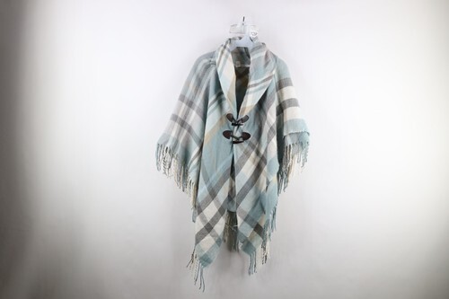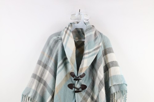 Vintage Streetwear Womens OS Toggle Button Fringed Knit Blanket Poncho Sweater