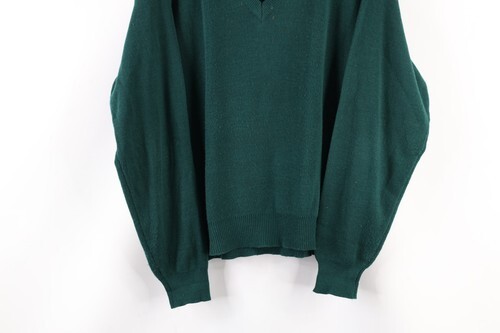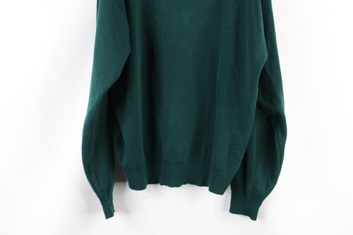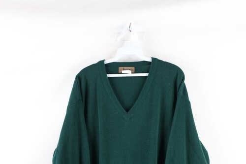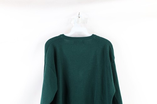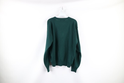Vtg 90s Streetwear Mens Large Distressed Blank Ribbed Knit V-Neck Sweater Green