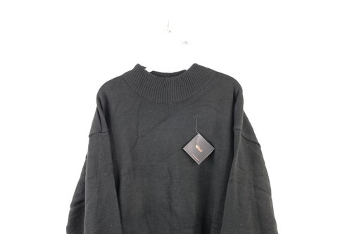 NOS Vintage 90s Streetwear Mens 2XL Blank Baggy Fit Knit Mock Neck Sweater Black