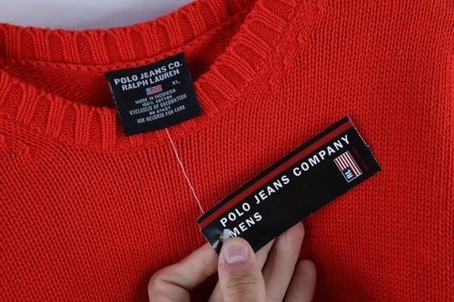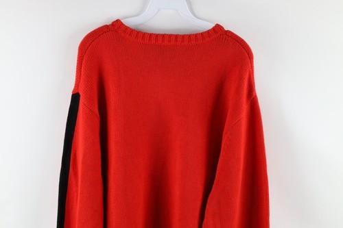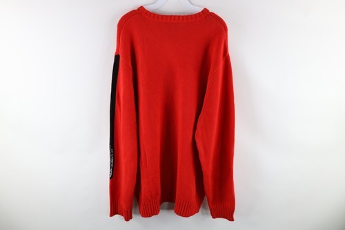 NOS Vtg 90s Ralph Lauren Mens XL Spell Out Color Block Cotton Knit Sweater Red