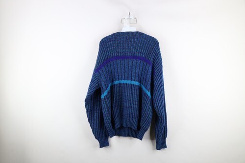Vintage 90s Streetwear Womens XL Striped Chunky Ribbed Knit Crewneck Sweater