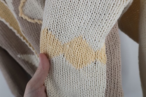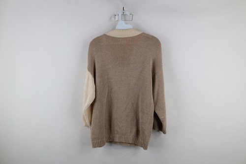 Vintage 80s Mid Mod Womens Medium Distressed Abstract 3/4 Sleeve Knit Sweater
