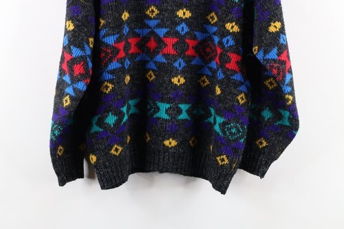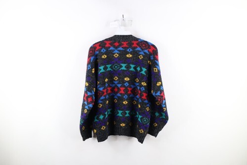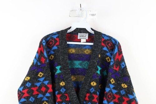 Vtg 90s Coogi Style Womens L Ed Bassmaster Rainbow Fiesta Knit Cardigan Sweater