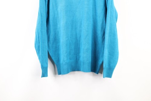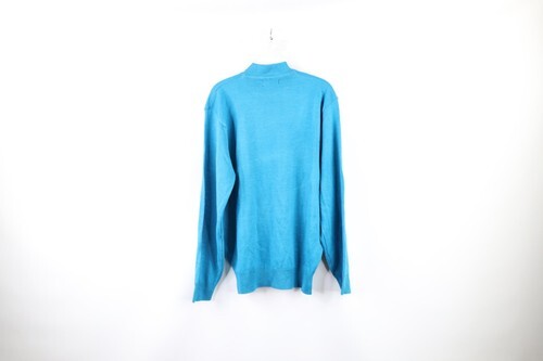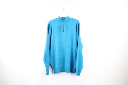 NOS Vintage 90s Streetwear Mens Medium Blank Mock Neck Knit Sweater Blue Acrylic