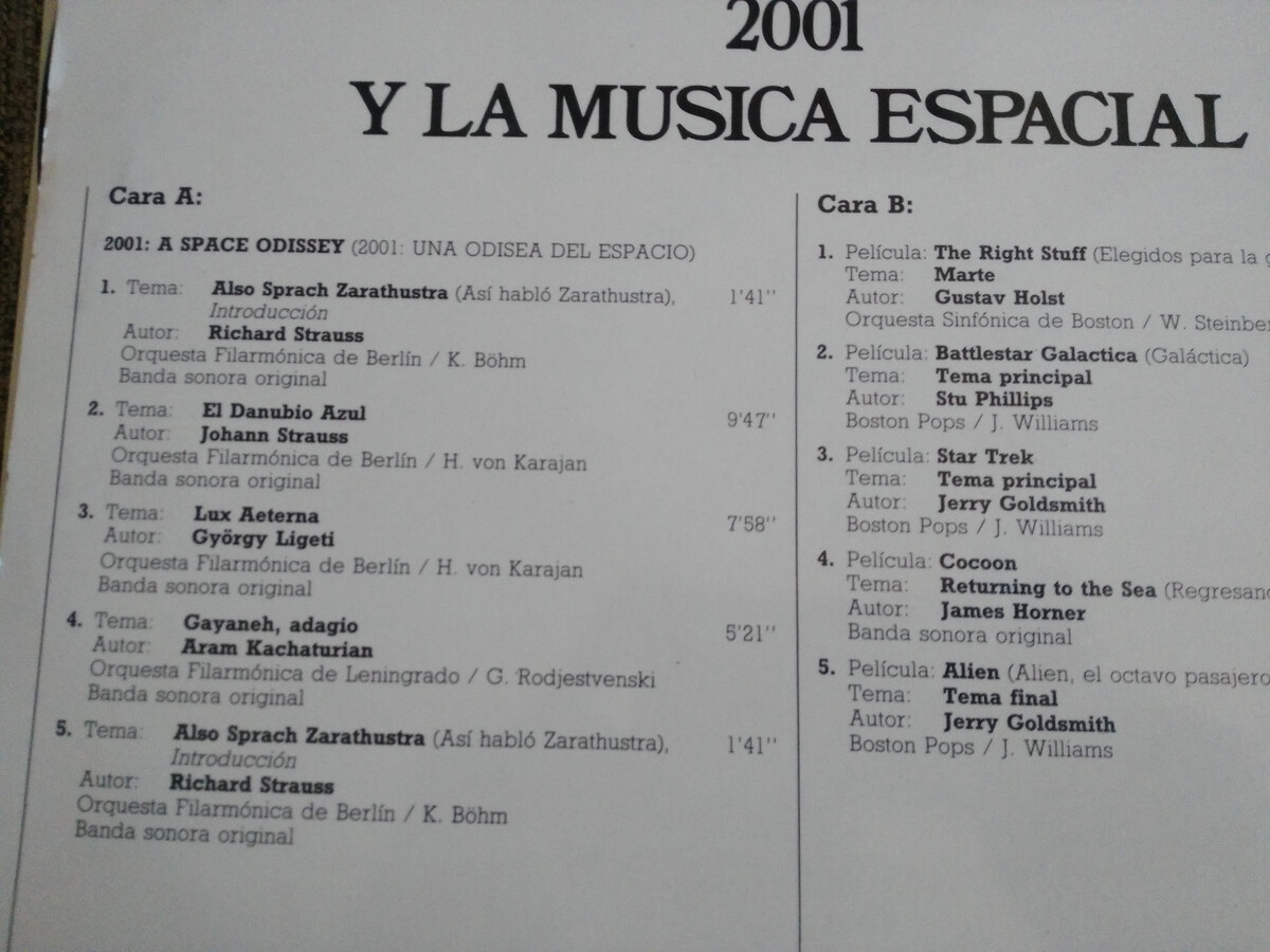 2001 An odyssey in el and space music LP vinyl 12 "1987 vg/vg