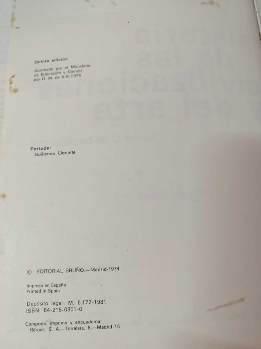 This manual de historia, Civilizations and del de The collection Codex de The Bruño publishing house is designed para 1st de . A work que combines content dehistoria universal anddel art,con didactic and informative approach. Exemplary con academic and also nostalgic value, very wanted by de collectorsde Ancient text and studentsque They want to recover classic materialsde study.