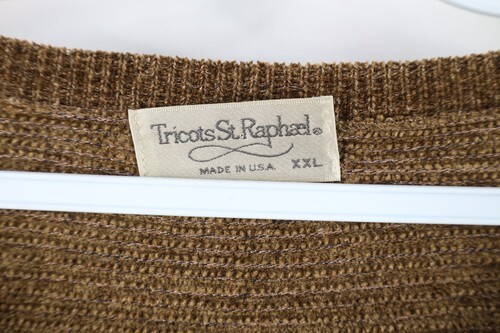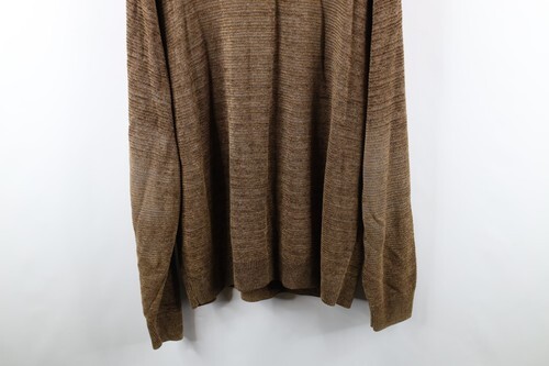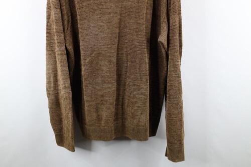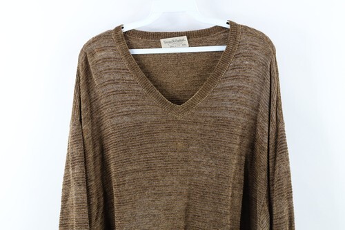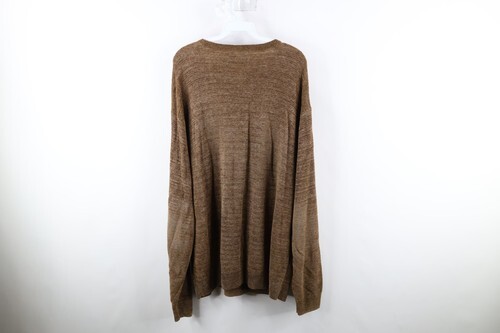 Vtg 90s Streetwear Mens 2XL Blank Ribbed Knit Fleece V-Neck Sweater Brown USA