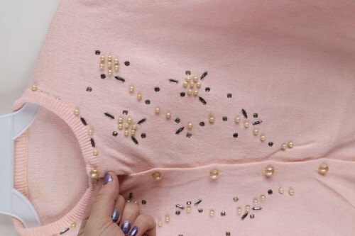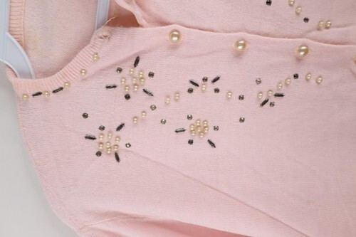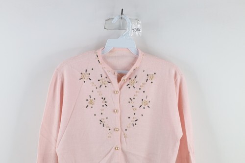 Vtg 50s 60s Streetwear Womens Medium Distressed Pearl Knit Cardigan Sweater USA
