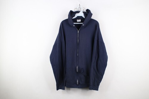 Vtg 90s Streetwear Mens 2XL XXL Thrashed Blank Full Zip Hoodie Sweatshirt USA