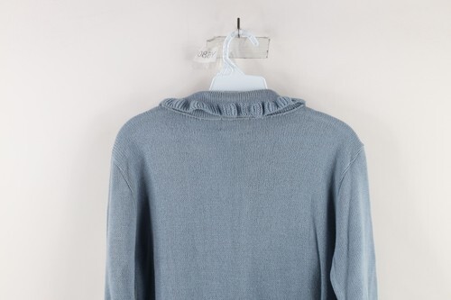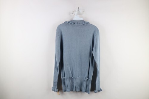 Deadstock Vtg 70s Boho Chic Womens L Frilled Ruffled Knit Cardigan Sweater USA