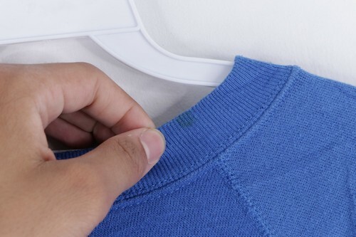 There is a snag pull on sleeve and blemishes lower back and collar. Some piling due to age
