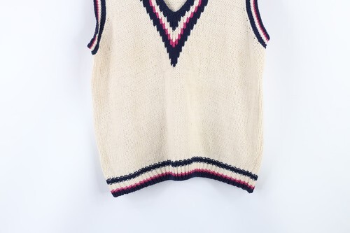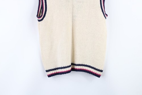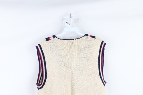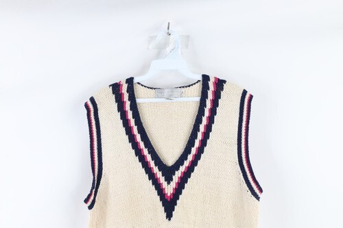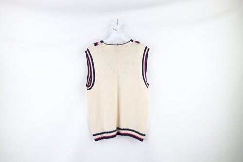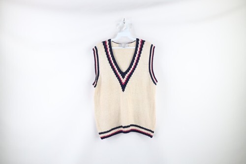 Vtg 90s Streetwear Womens Large Distressed Striped Linen Blend Knit Sweater Vest