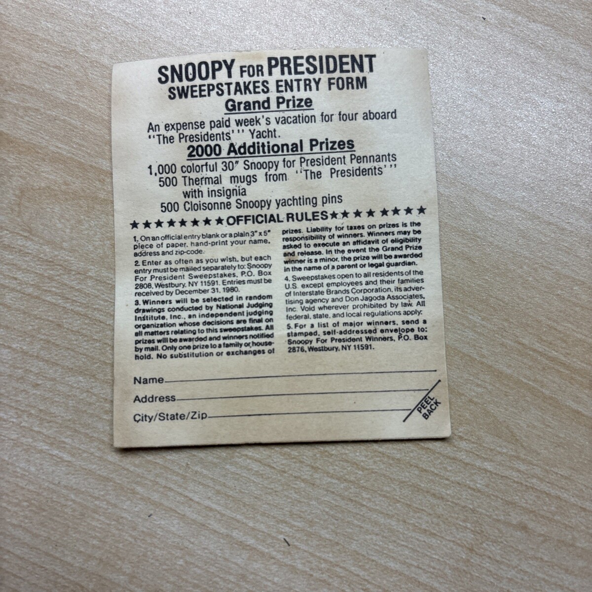 Vintage Snoopy for president 1980 Sweepstakes-lot Of 7 added to cart.